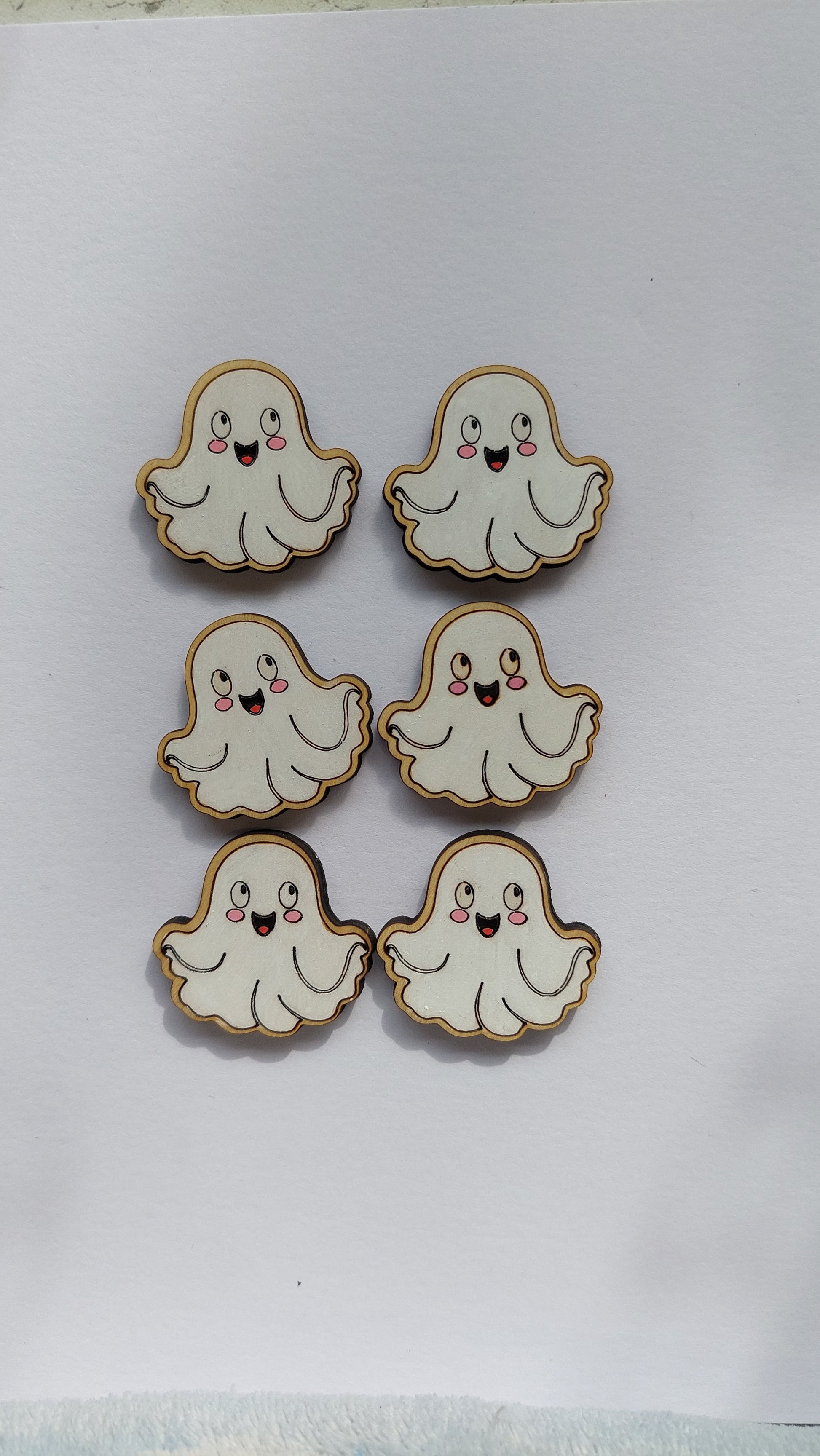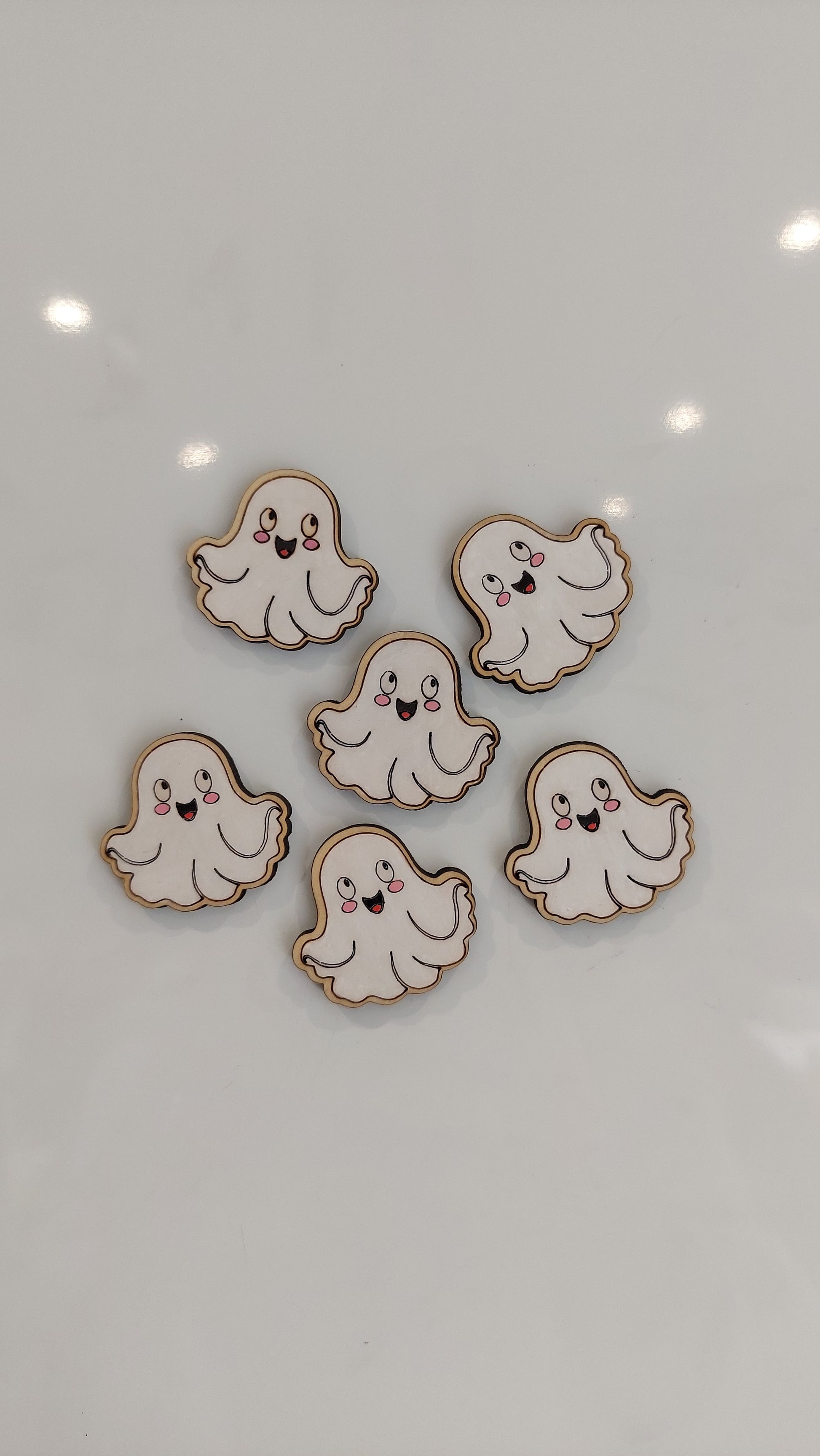 Cute Ghost Magnets - Set if 6 | Spooky Kawaii Fridge Decor | Halloween Gift | Handcrafted Wooden Ghost Magnets.